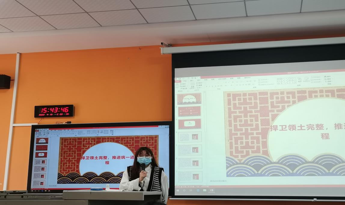 (通讯员 彭嘉钰)2022年4月19日下午15:40,经济贸易学院学工党支部于二教101教室组织开展“捍卫领土完整·推进统一进程”主题党日活动。此次活动由第二期“青春向党”入党积极分子先锋营第七小组的曹雨婷同学主持,支部全体党员、入党积极分子参加此次活动。
