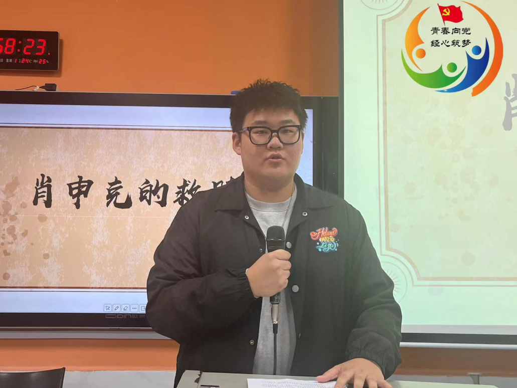 接下来,入党积极分子兰浩哲同学在阅读了《肖申克的救赎》一书后分享道:“书本中有的是对美国社会制度的讽刺与批判,对人性的扭曲和心中丑恶的欲望的揭露,对监狱中的犯人时隔多年进入社会却发现与社会脱轨的不适。希望是件美好的事,也许是世间最美好的东西,而美好的事物永不消逆。”