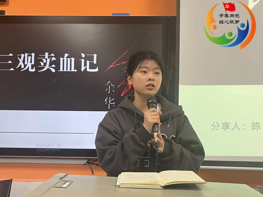 最后,入党积极分子陈好同学在阅读了《许三观卖血记》一书后分享道:“这是一本悲惨而真实的故事,记录了中国一个历史时期里,人民因为生活困难而不得不卖血谋生的情景。许三观的亲身经历告诉了我们,在任何时代,人民都会在艰苦环境下努力谋生,而这些努力是需要我们尊重和关注的。”
