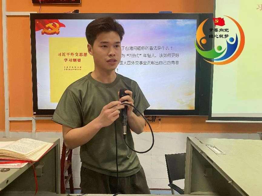 紧接着,向粲同学就“大家对台湾问题的看法”“作为‘Z世代’年轻人,该如何更好地为中国大国外交事业贡献出自己的青春力量?”两个问题组织大家展开了交流讨论。