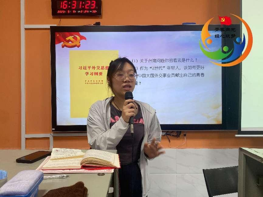 (通讯员 何函果)为促使支部党员、入党积极分子深刻领悟习近平外交思想,2023年5月9日,经济贸易学院学工党支部在博思楼101(经济贸易学院分党校)组织开展“习近平外交思想推动人类发展”主题党日活动。此次活动由第三期”青春向党”先锋营入党积极分子向粲同学主持,经济贸易学院学工党支部全体党员、入党积极分子参加此次活动。