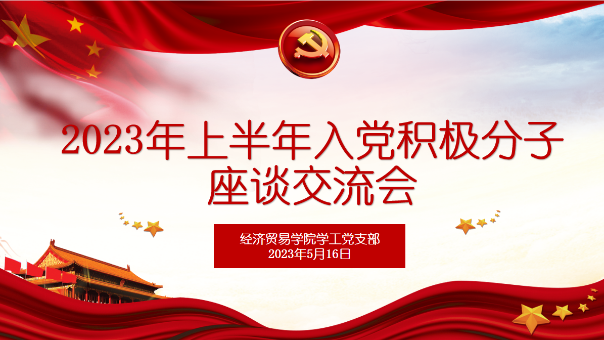 (通讯员 喻晓阳 肖伟)为使学院新一批入党积极分子进一步明确入党动机,坚定理想信念,2023年5月16日下午2:30,经济贸易学院学工党支部于博思楼101教室(经济贸易学院分党校)组织开展“注入新力量,续写新篇章”入党积极分子座谈交流会。本次活动由第三期“青春向党”入党积极分子先锋营营长肖伟主持,经济贸易学院学工党支部全体党员、入党积极分子参与本次活动。