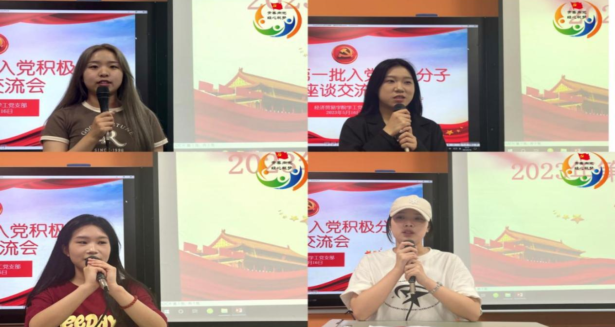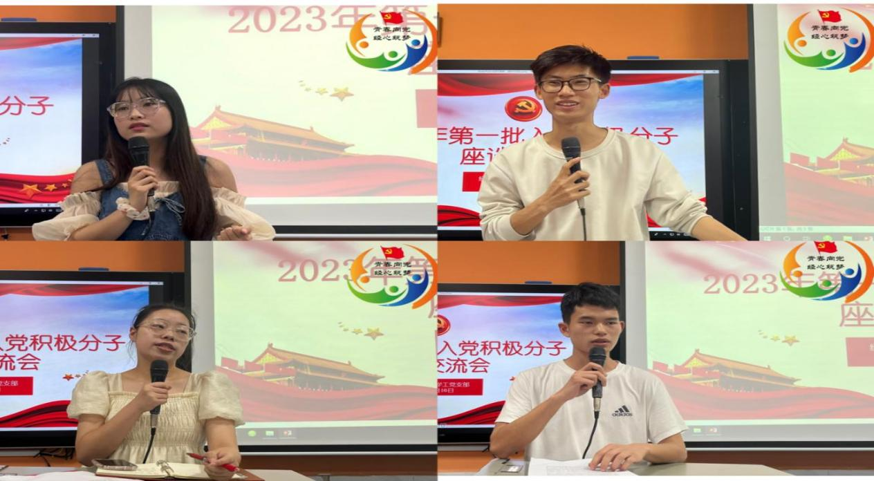 22级商管1班的赵宇欣分享道:“在入党积极分子培训的过程中,我感受到了这个‘小家庭’的温暖。今天参加了这次座谈交流会让我有了很多新的感受。在接下来的学习生活中,我会树立正确的奋斗的目标,勇往直前。”22级全媒体1班张宝贵分享道:“成为一名入党积极分子以来,我收获了很多,成长了很多。一次次理论学习,增强了我对党的认识;一次次实践活动,增强了我的社会责任感。今天非常感谢学长学姐们的倾囊分享。如今,我们马上步入大二,理应接过学长学姐们的接力棒。我们也会不断挑战自己,争取早日成为一名光荣的共产党员!”……