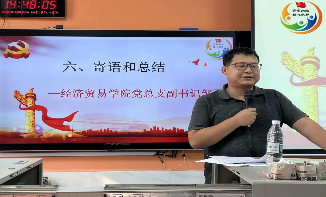 (通讯员 杨宇欣)2023年10月24日下午2:30经济贸易学院学工党支部在博思楼101教室(经济贸易学院分党校)举行2023年第二期入党积极分子培训班结业典礼。本次结业典礼由经济贸易学院学工党支部书记方红梅主持,经济贸易学院党总支副书记邹磊及全体2023年第二期入党积极分子参加此次活动。