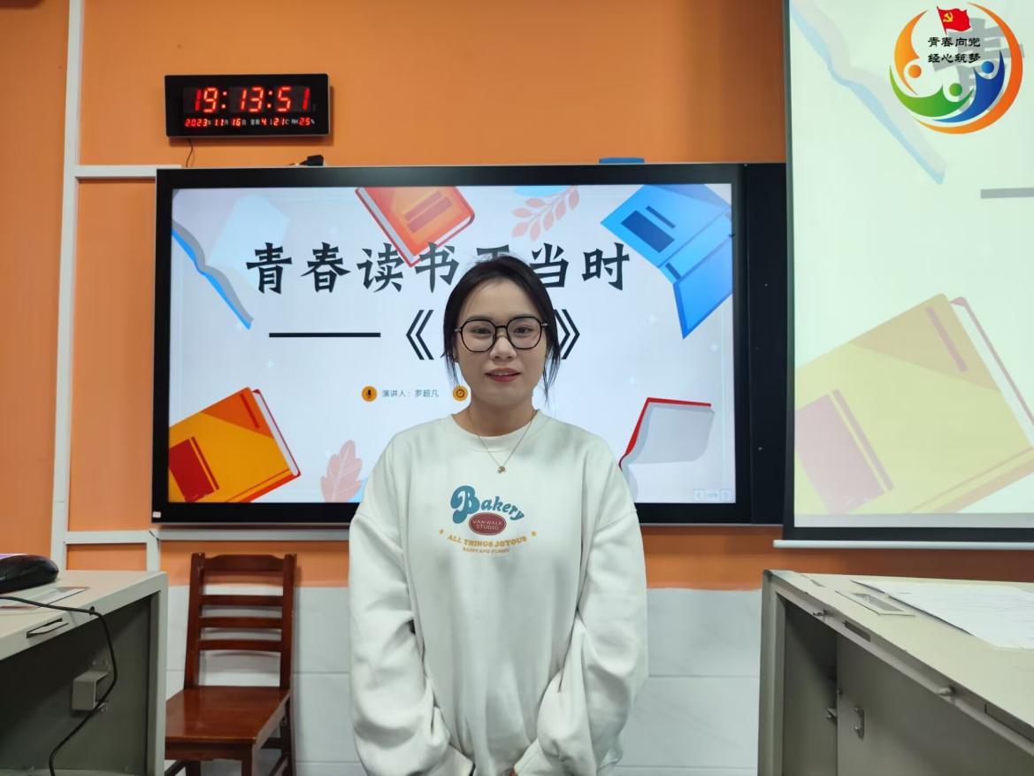 最后,22级商务管理2班的周琛同学分享了路遥的《平凡的世界》。她通过这本书的五个主人公的故事带领大家领略那个时代的生活。同时,她用自己这样一段话勉励大家:“在平凡的生活中,需要努力去奋斗,不管是生活还是爱情,只要通过努力都有可能去实现。把苦难当作幸福也是一种甜。”