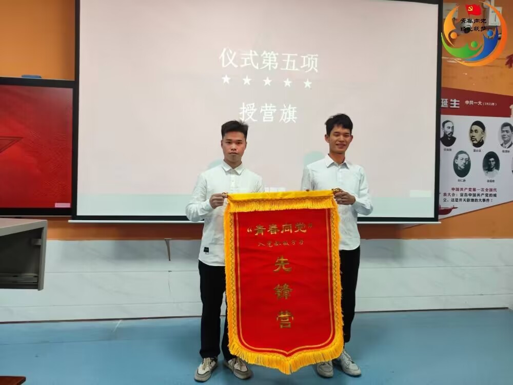 接下来,进行授营旗仪式。由第三期“青春向党”入党积极分子先锋营营长肖伟同志向第四期“青春向党”入党积极分子先锋营营长授旗。授营旗代表的不仅仅是责任的交接,更多的是先锋营不忘初心、砥砺前行的精神的传承。