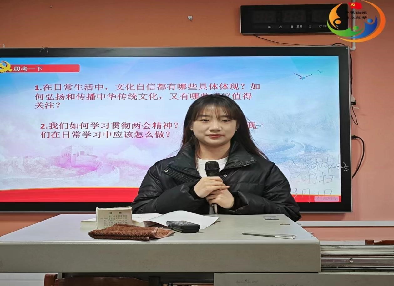 活动开始,主持人以“‘两会’是什么”导入本次学习。随后,主持人分别从“两会背景与意义”“2024年两会关键词”“文化自信”“贯彻落实两会精神,推动实际工作”四个方面带领大家走进两会的多彩世界。