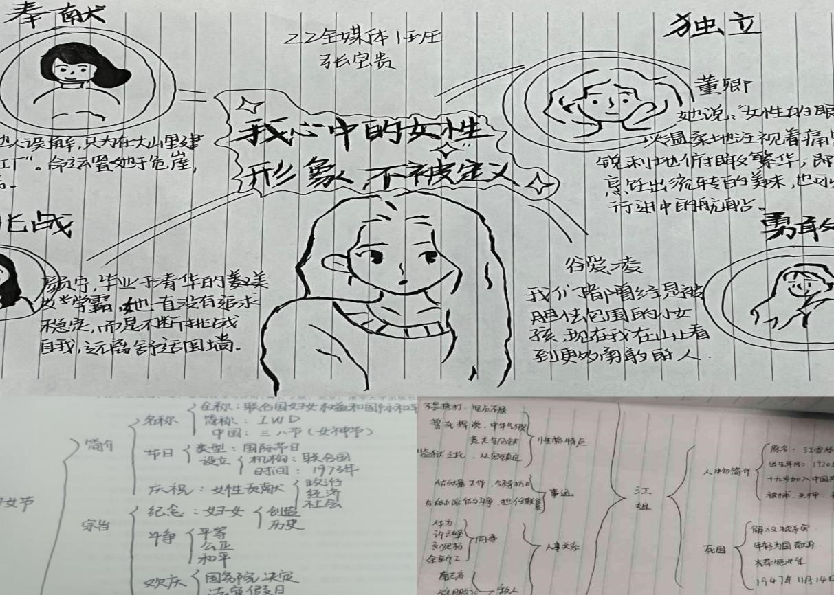 巾帼花争艳,巧手绽芳华。同学们以手为媒,尽情发挥想象,将感情映射于作品,以不同的女性形象形成巧妙的碰撞。通过巧手与真情,一件件独具匠心的插画作品渐次诞生……