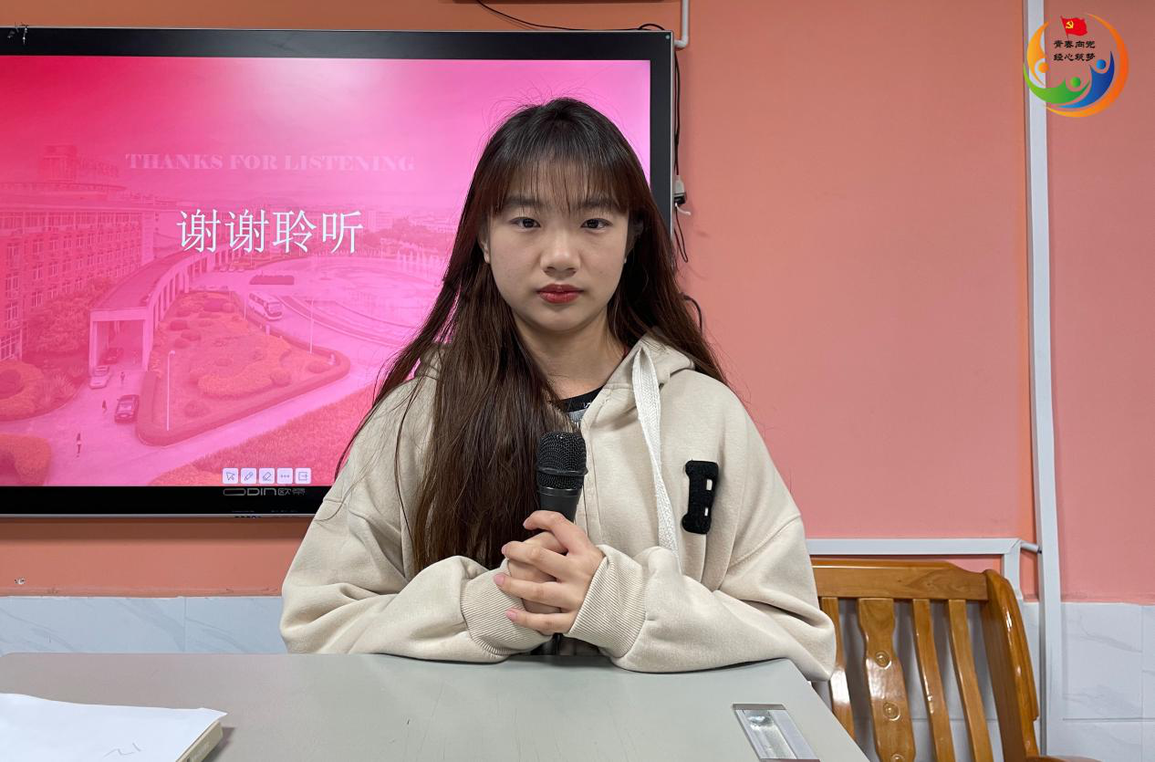 接下来,主持人组织大家以“青年应该如何应对就业”进行学习分享。其中,22级全媒体广告策划与营销1班罗超凡说道:“就业形势如此严峻,作为一名大学生,我们更要努力提升自己的能力,不眼高手低,投身到社会中去为社会创造财富,以实现自己的人生价值。同时,在校期间,我们就要抓住一切学习和实践的机会,努力实现自我提升。”22级市场营销3班石鑫分享道:“对我们来说,就业是一个很现实的问题。几个月之后大家都将面临继续提升学历或者直接就业的选择。面对就业,我觉得我们最应该做的就是努力提升本领。只有自己优秀了才能得偿所愿。通往成功的道路有很多,多去探寻、努力拼搏终会找到属于我们自己的路。”