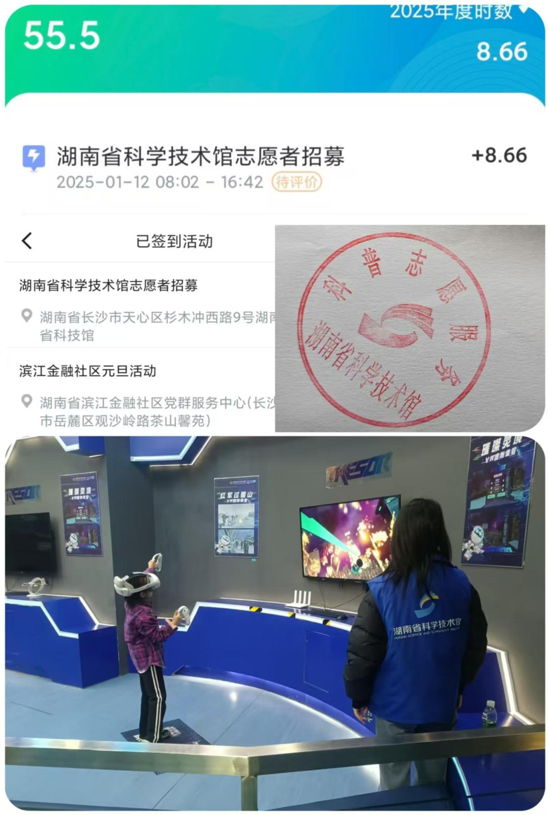 在假期的第一天,周贞就报名参与了湖南省科技馆志愿活动,在活动过程中,她负责引导孩子们体验VR科技。她从一开始的不熟练操作,到能够让活动现场有序得进行,再到引领孩子们沉浸式体会VR科技带来的生动和趣味。“在这个过程中,我不仅完成了自己的本职工作,还激发了孩子们对科学的兴趣,那种成就感让我很满足。”
