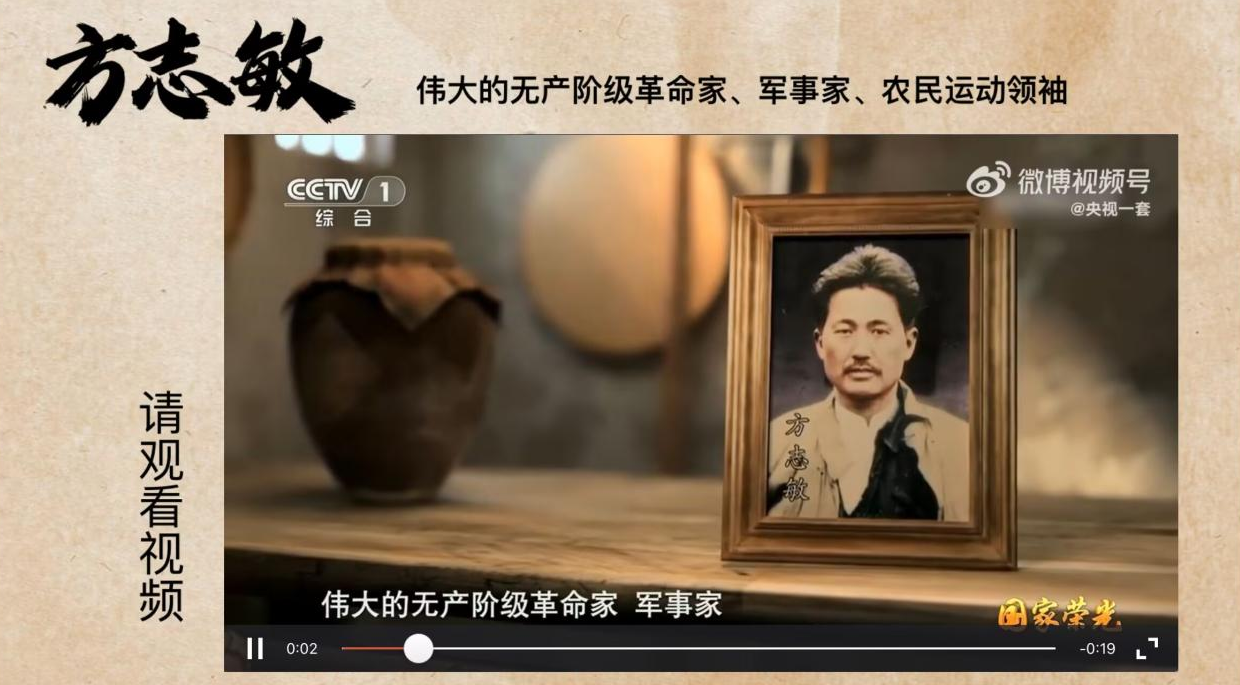 首先主讲人组织大家观看了短片节选《国家荣光》,短片简介了方志敏的一生,他作为一位伟大的无产阶级革命家、军事家、农民运动领袖,始终对共产主义事业充满坚定不移的信仰,为推动革命事业的发展做出了重要贡献。