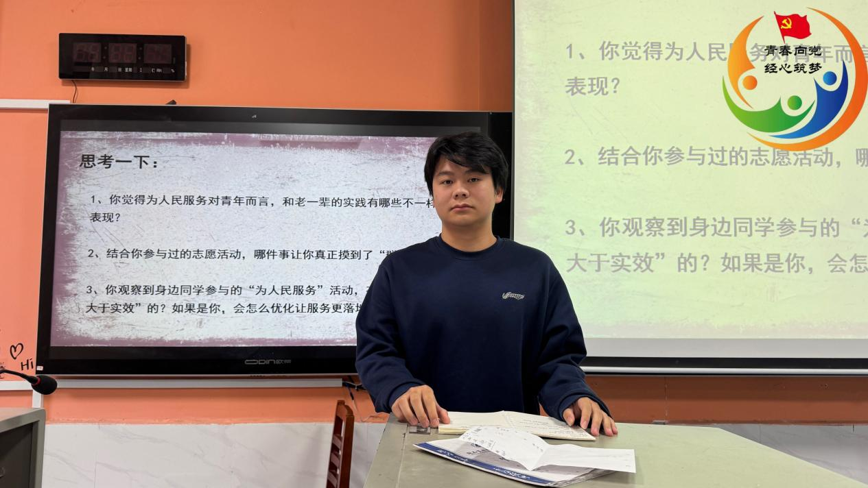 接着,主持人带领大家学习“青春践初心,服务为人民”主题党日活动,生动阐释了“为人民服务”的时代内涵——它既传承着老一辈革命者的奉献底色,也呼唤青年以新的实践方式诠释担当。