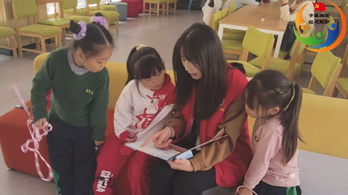 在阅览室里,他们是知识的引路人,也是心灵的陪伴者——轻声讲解绘本故事,与孩子们一起开展趣味主题活动。红马甲与红领巾之间,流动的不只是知识,更是两代学子之间真诚的情感连接与温暖的成长对话。