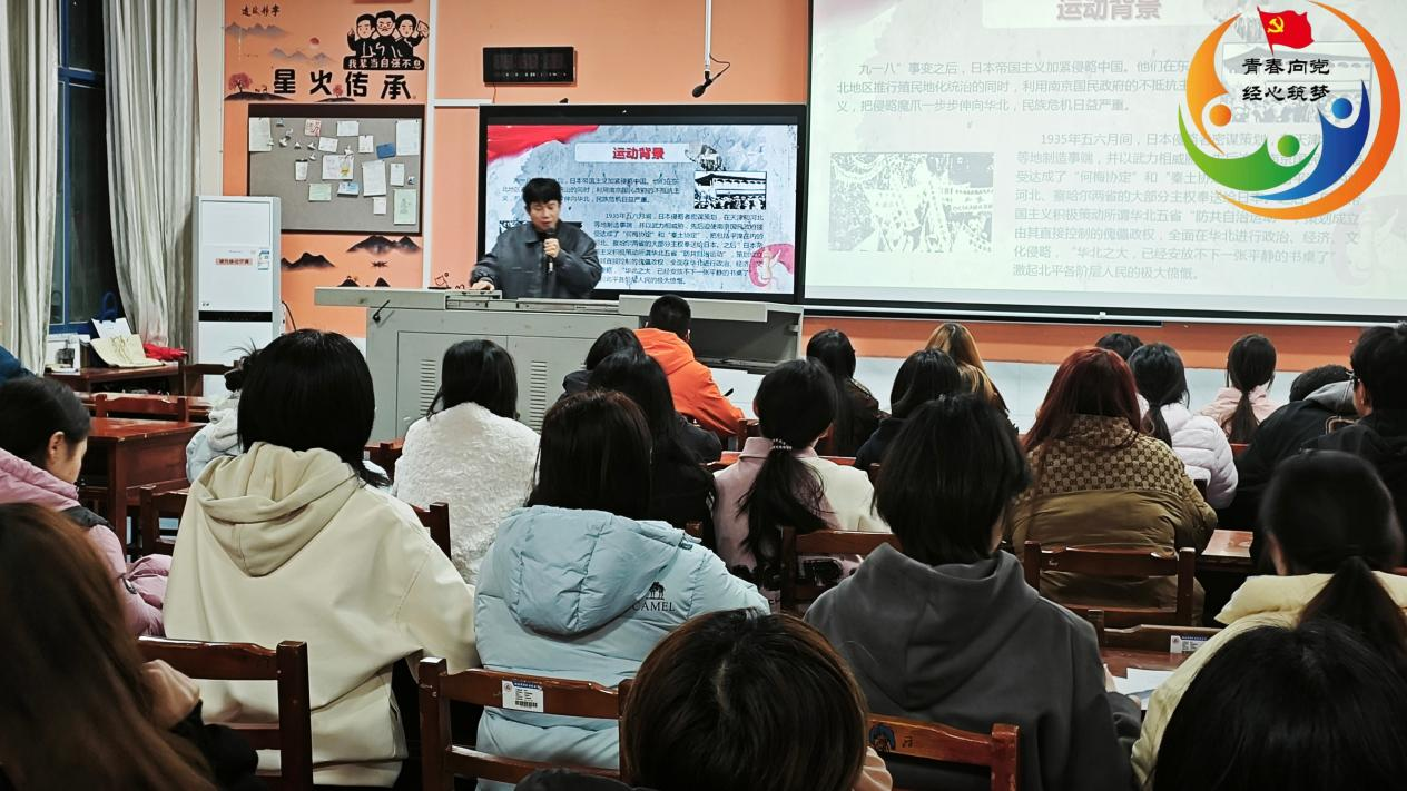 首先,主讲人陈金伟同志围绕“一二·九”运动的历史背景与时代意义,带领同学们重温那段波澜壮阔的学生爱国运动,使大家对这段历史有了更直观而深刻的理解,也为后续环节奠定了庄重而富有感染力的基调。