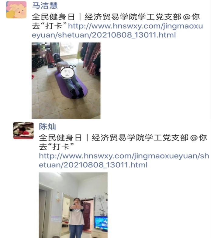 经济贸易学院学工党支部开展“全民健身与防疫工作同行”线上打卡活动