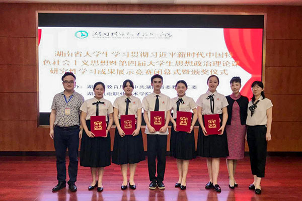 在5月27日结束的湖南省大学生学习贯彻习近平新时代中国特色社会主义思想暨第四届大学生思想政治理论课研究性学习成果展示竞赛决赛中,由思政课部邓艳君、高莉和肖彬老师指导的研究性学习小组——来自经贸17市营1班的何江瑶、肖剑、曾睿琪、黄琳欢、易凤琴,以作品《习近平知青岁月对大学生成长成才的启示研究》,获得高职高专组一等奖第一名。