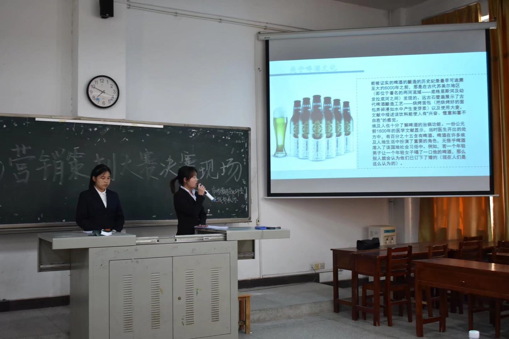本次比赛每支参赛队伍以指定产品——青岛啤酒鸿运当头定制版为推广对象,以提升产品品牌形象和知名度为目标,完成全渠道品牌推广方案。经过层层筛选,共12支队伍参与总决赛的角逐。比赛开始,第一支队伍16市营1班,通过10个不同的策划点,辅以严谨的市场调研,提出了许多独具匠心的营销策划,在优化细节的基础上挖掘新的创意并结合微博、朋友圈等媒介推广方式给观众评委们留下深刻印象。17市营2班凭借时尚新颖的推广主题,充分对其线上线下进行全渠道推广。整个比赛过程井然有序、组织严密、客观公正,现场气氛紧张而热烈。