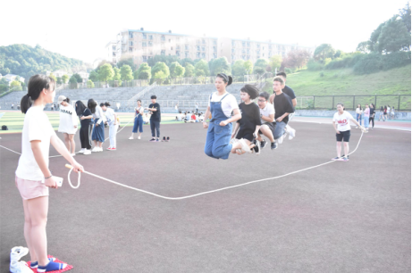 25日早上7:10在田径场举行“绘制青春,放飞自我”户外拓展活动。24个人分成3组进行游戏竞赛。组织人员讲解游戏规则之后,进行了指压板跳绳游戏与气球爆炸游戏。刚开始时各队均出现配合问题,但是在组员的积极配合与相互适应中,错误率明显减少。最终各组均完成指定任务,圆满结束拓展训练。
