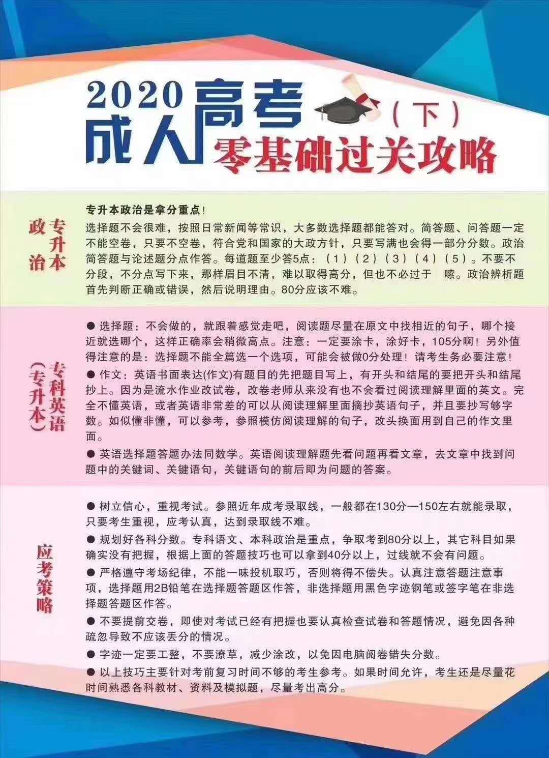 2020年成人高考零基础过关攻略