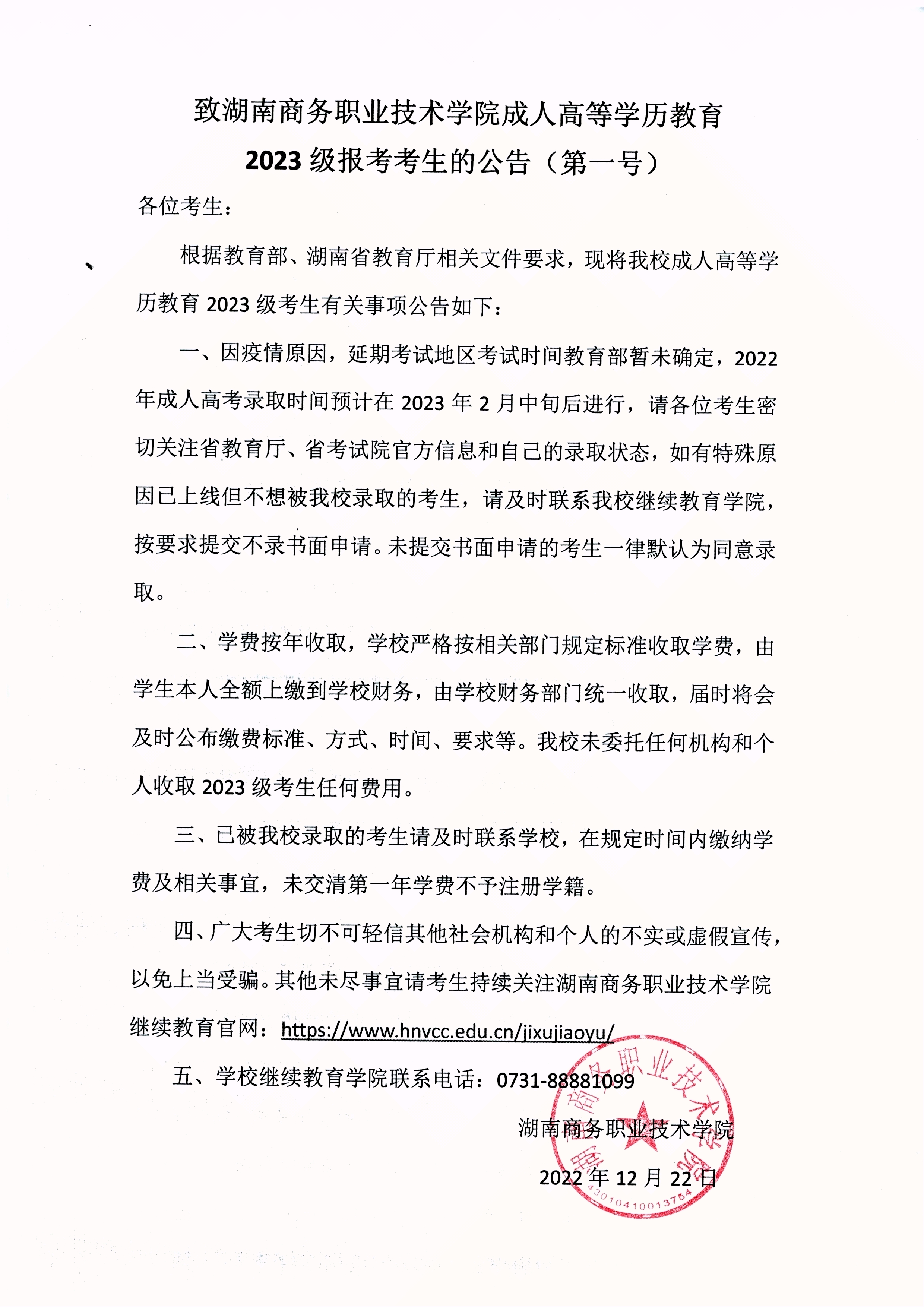致成人高等学历教育学生及2023级报考考生的公告(第二号)