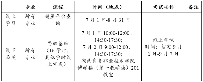 2023级本学期开设专业人才培养方案第一学期的课程,采取线上与线下相结合的混合式教学。线上课程学生利用超星平台资源进行线上学习(账号:身份证号码,密码:edu@+身份证后六位;方法1:网址登录http://hnswxy.jxjy.chaoxing.com/login;方法2:安装“学习通”APP。超星平台登录及操作方法详见附件3)。线下课程由老师面对面授课,学生须来校参加学习。确因身在外地且确实时间冲突、生病等特殊原因不能来校参加线下课程学习的,需向班主任老师报备,并通过线上同步直播收看。