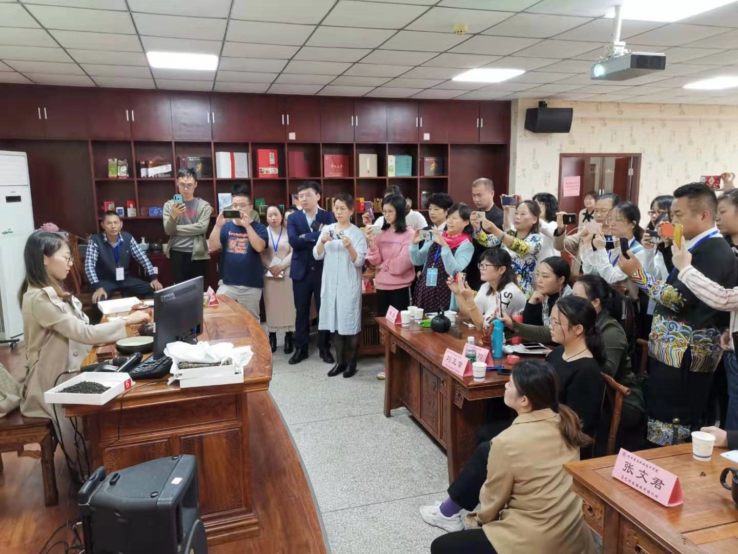 图六:培训老师在讲解各种茶叶的特征