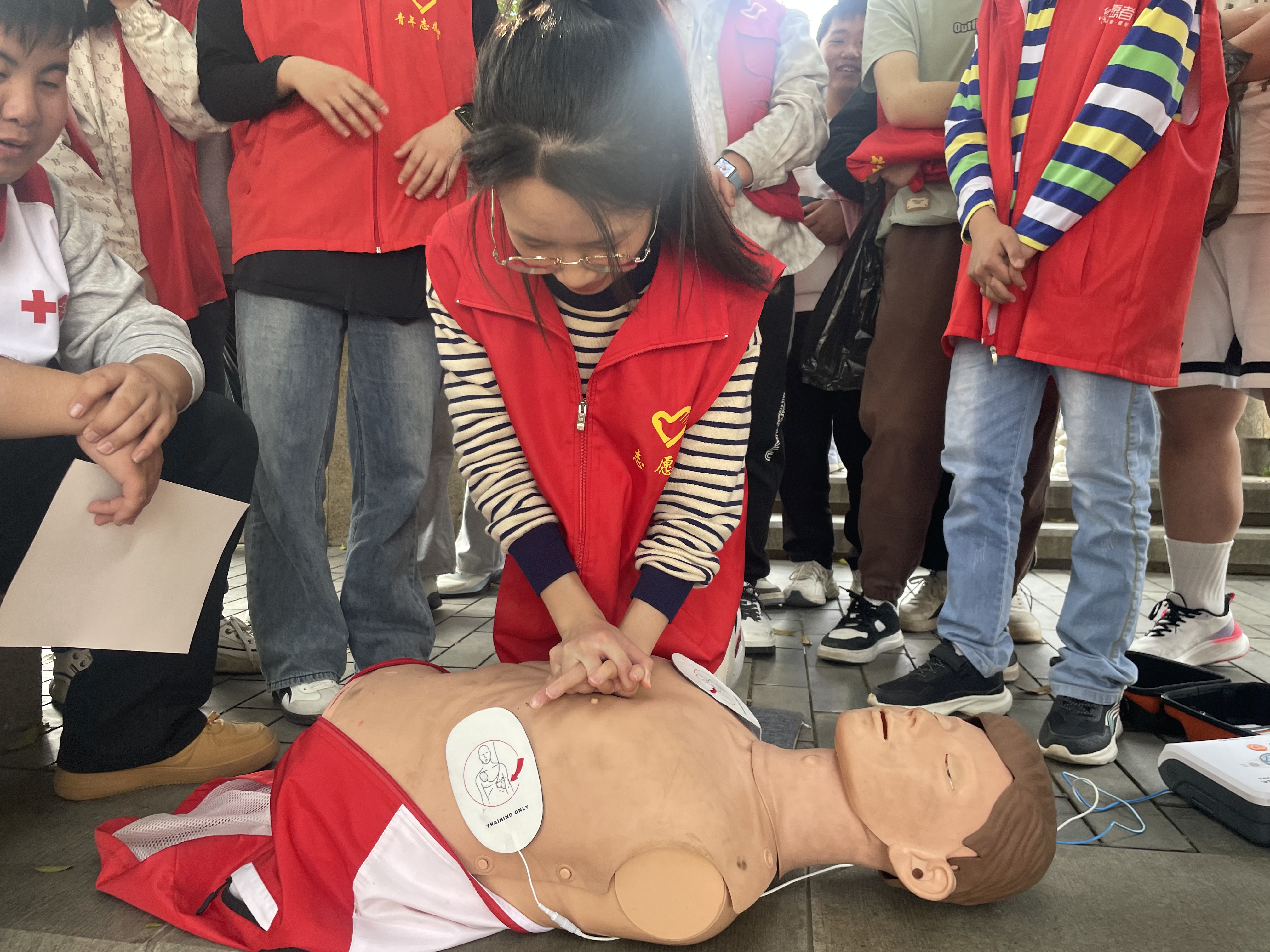 专业急救人员通过理论讲解与实操示范,系统传授心肺复苏(CPR)的操作流程与技术要点。参训学生专注聆听、踊跃互动,分组进行模拟演练,逐步掌握急救要领,为应对突发状况积累实战技能。