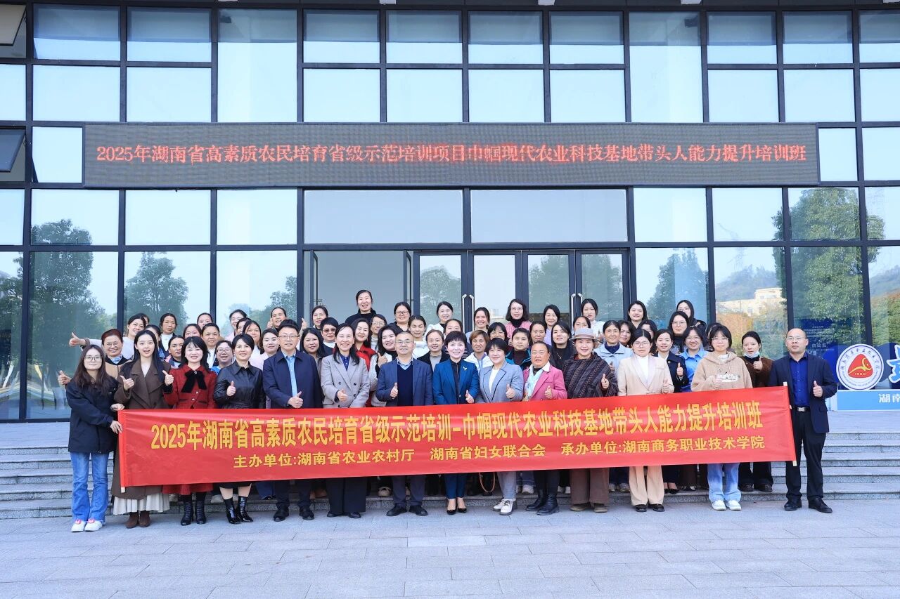 在全面推进乡村振兴的时代背景下,广大乡村女性正以智慧与坚韧投身农业农村发展一线,成为名副其实的“半边天”。培育一支有技术、善经营、懂管理的高素质农民队伍,尤其是发挥乡村女性的重要作用,对推动农业高质量发展、加快农业农村现代化具有关键意义。在此背景下,12月1日,湖南省高素质农民培育省级示范培训项目——巾帼现代农业科技基地带头人能力提升培训班在湖南商务职业技术学院正式启动。