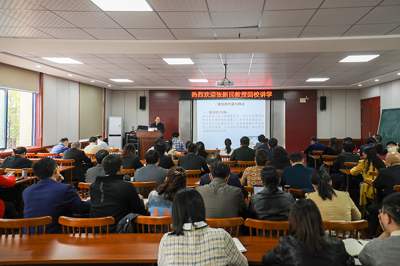 张新民从规划的内涵与发展、“十四五”宏观经济社会环境、“十四五”高职教育发展趋势、“十四五”规划工作方案、“十四五”规划的实施、子规划的构建、对商务职院“十四五”规划的建议等七个方面,全面系统介绍了“十四五”制定的背景、依据、路径和制定实施时应注意的事项等,内容丰富、学理清晰。他指出,高等职业教育发展,一是强调德智体美劳全面发展;二是更加强调服务能力提升,尤其是要凸显为农服务特色;三是校企合作要更加深入广泛;四是类型教育特色更加明显;五是学校之间竞争愈发激烈。学院应主动掌握好高职教育发展规律,整合资源,走出一条有“商务特色”的高质量发展之路。讲座结束,张新民教授殷切希望学院,高质量科学制定好学院“十四五”发展规划,促进学院高质量发展,早日建成美丽幸福新校园。