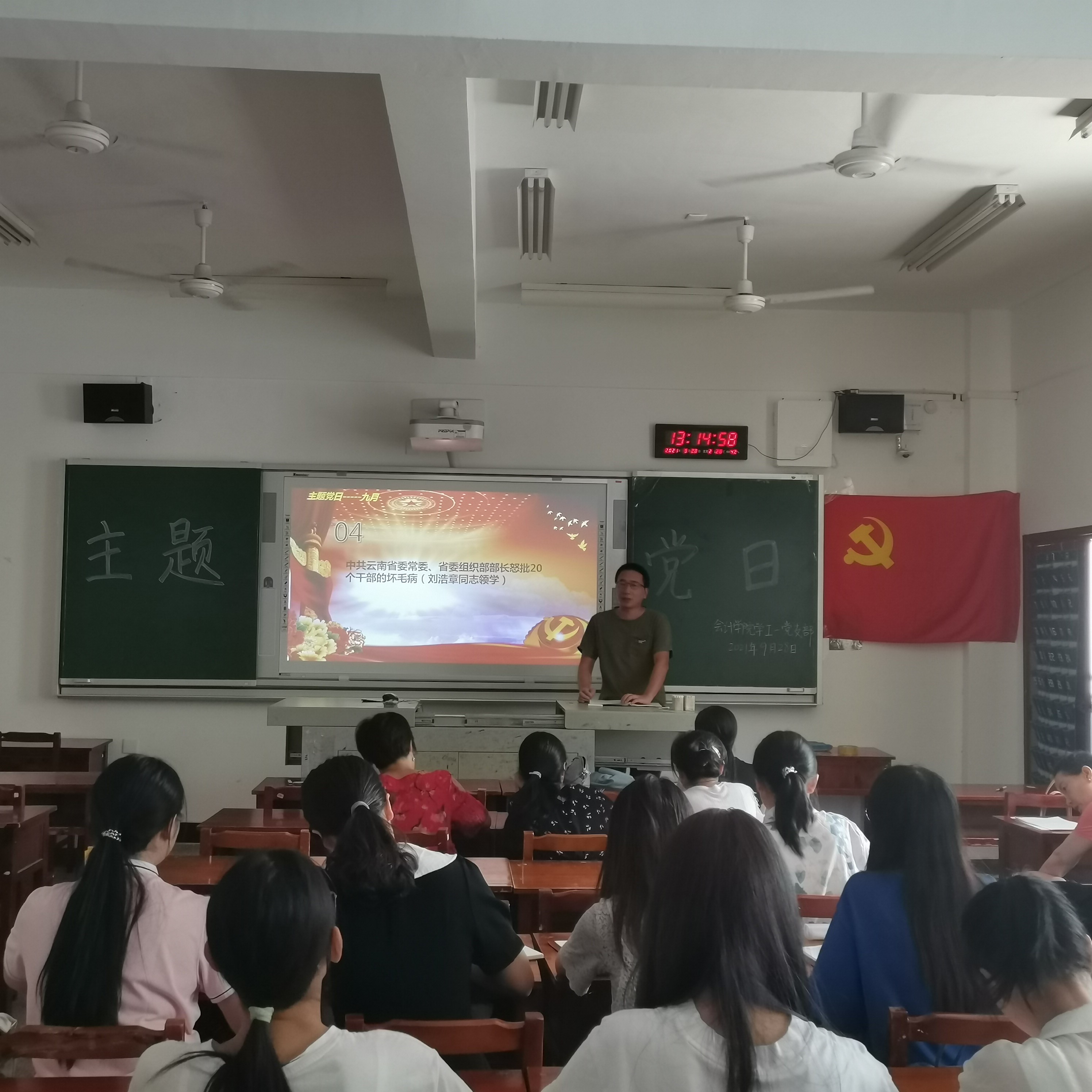 9月28日12:40,会计学院学工一党支部在二教204举行了主题为“学习上级文件通知及领导重要讲话精神”九月份主题党日,全体党员参加了此次活动。