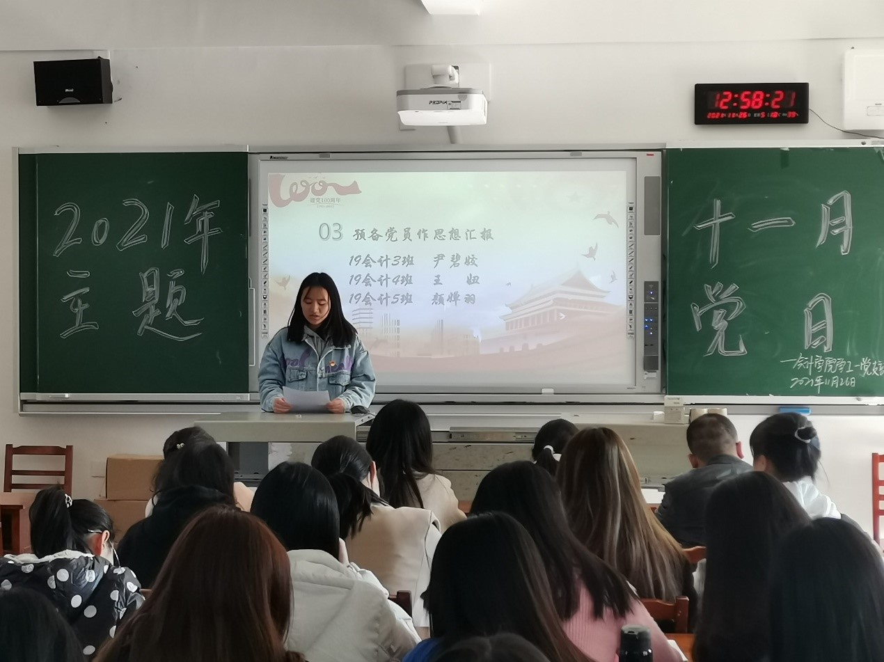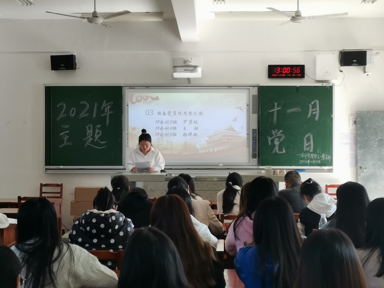 11月26日12:40,会计学院学工一党支部在二教204举行十一月主题党日活动,全体党员同志参加此次会议。(图1)