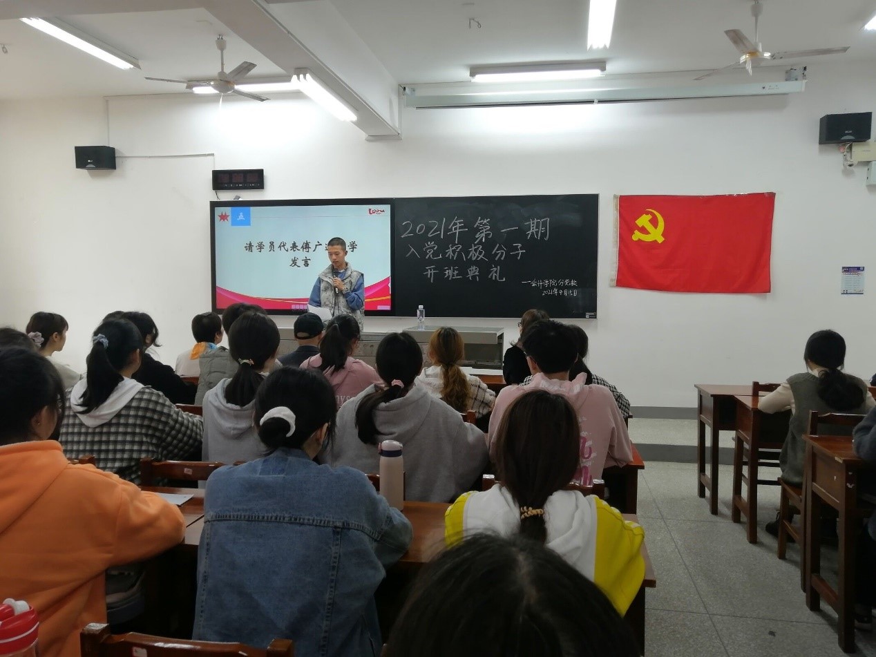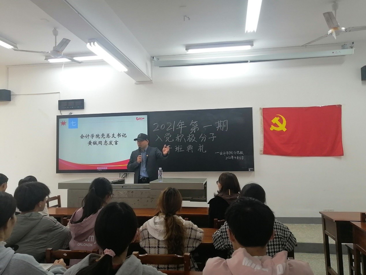 会计学院分党校于2021年4月15日12:10在二教301室举行了会计学院2021年第一期入党积极分子培训班开班典礼。培训班旨在加深学员对党的认识,端正入党动机,坚定入党决心,严格要求自己,争取早日加入党组织。来自19、20级各团支部共127位入党积极分子参加本期培训班,将进行为期21天的集中学习。
