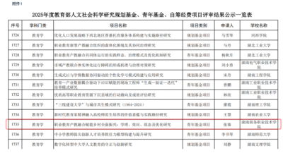 近日,2025年度教育部人文社科研究一般项目立项名单揭晓。湖南商务职业技术学院传来喜讯,该校会计学院85后副教授张秦主持的《职业教育产教融合赋…【查看全文】