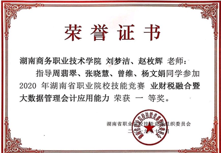 我院两支代表队在2020年湖南省职业院校技能竞赛(财税融合暨大数据管理会计应用能力大赛中均斩获一等奖