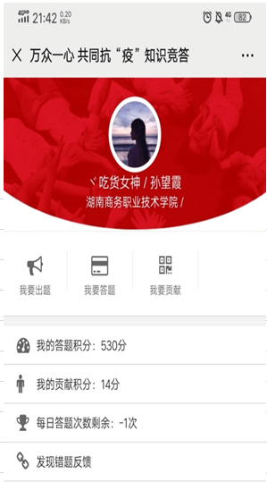 会计学院统计与会计核算专业,18统会2班孙望霞同学从自己出发,积极宣传防控知识,分享战疫中的感动故事。