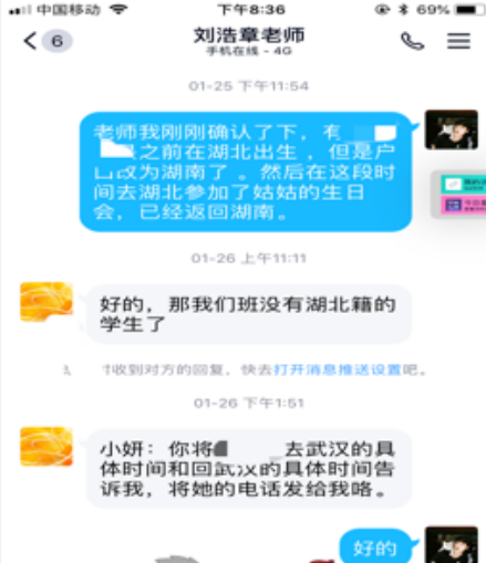 1.积极配合老师开展班级同学的身体情况排查。