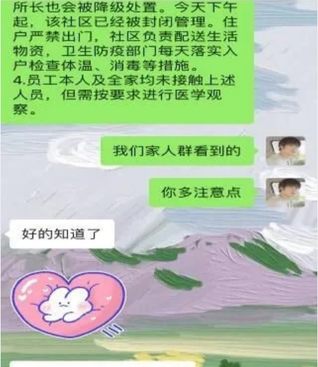 年前了解到疫情后,我感到很害怕,也很愤怒,一个好好的城市变成了这样。我开始找到2003年抗击非典的纪录片、韩国电影《流感》等等。那个时候的信息不是很多,家里人并没有很重视,但是在我劝说之下,今年过年就只去看了爷爷奶奶。在进爷爷家大院时,站岗的哨兵认真登记了我们的体温,还检查了是否佩戴口罩,这时爸爸妈妈有点担心了。