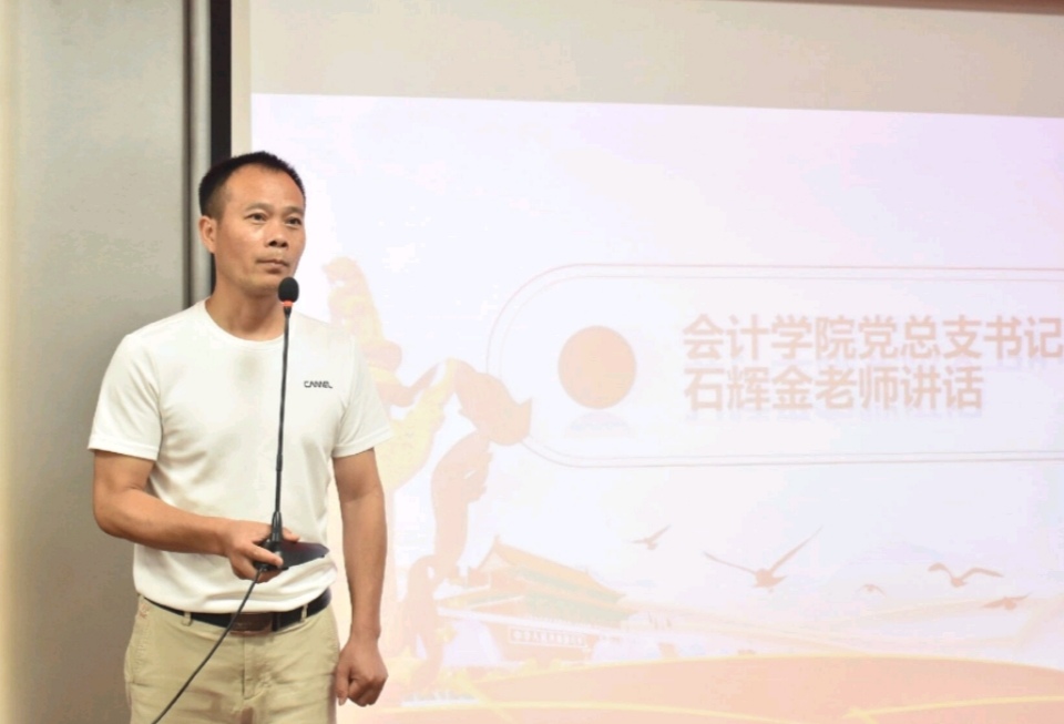 会议第五项,会计学院党总支书记石辉金讲话。石书记向在场的所有人员问好,同时石书记也对在特殊时期,组织培训并按照要求完成考核的入团积极分子给出了最好的肯定。石书记强调,青年时期是最有活力和朝气的时期,众多的青年汇聚在一起是什么样,也就决定了国家的走向和民族的走向。在大变局信息化社会多元化的时代,唯有加强学习,学会思考,并在前两者的基础上,努力提高自己的判断能力,才能在这一片土地上,更好的学习和成长。同时石书记也希望33位学员可以努力提高自己,担负起时代的使命,履行好自己的责任,为自己的青年时期交出最满意的答卷。
