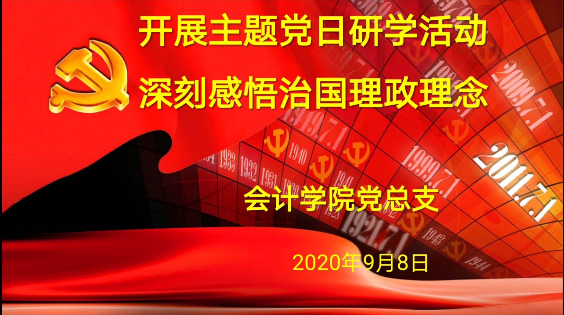 在会计学院强力推进“红星引路”党建特色品牌建设之际,所含三大项目之一“永远跟党走”的“学主席思想”栏目活动于2020年9月8日在学校二教201室进行,开展了以“开展主题党日研学活动深刻感悟治国理政理念”为主题的学习《习近平谈治国理政》第三卷研学活动。出席领导有党总支书记黄铖、党总支副书记兼院长柳志、党总支副书记林达、副院长许立兰,参会人员还有教工党支部、学工一党支部、学工二党支部共三个党支部全体党员,活动由组织干事朱泳霖同志主持。