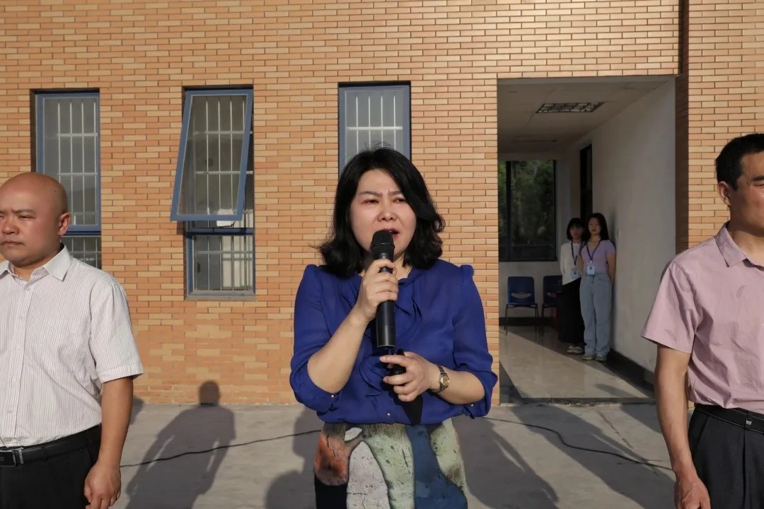 升旗仪式开始,国旗班队伍踏着整齐的步伐入场,伴随着国歌和鼓号声鲜红的国旗缓缓上升,紧接着由教官队带来了精彩的示范展示。随后,党委委员禹明华副院长对新生提出几点寄托:一、要认真领会军训的目的与意义,做好充分的思想准备,主动去迎接和经受这次锻炼和考验。二、要虚心向教官学习,高标准高质量完成训练任务。三、遵守纪律,注意安全。升旗仪式是此次军训的总号令,全体学生要不惧风雨、不畏烈日、砥砺自我,拿出最坚定、最坚强的意志,圆满完成本次军训任务。
