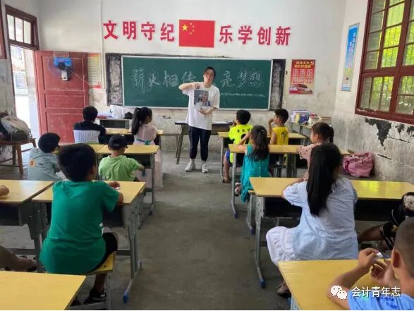 为了响应党的号召,深入贯彻党史学习教育,发挥广大青年的党史领学作用,2021年7月10日,会计学院“传承和弘扬伟大抗战精神,助推乡村振兴”暑期三下乡社会实践团队在标东陇村第一教学点开展了一堂特殊的“党课”——薪火相传,点亮梦想。