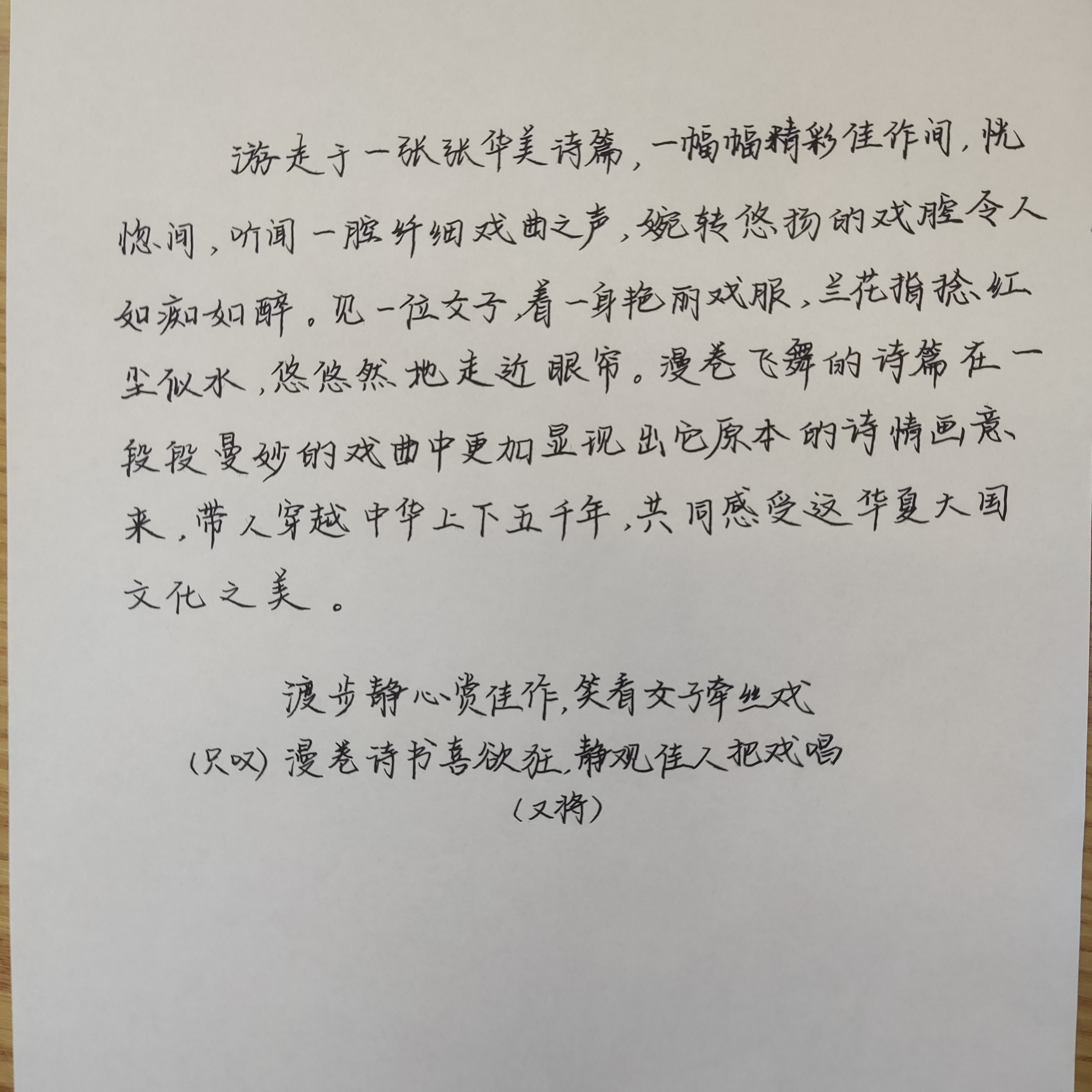 比赛进行中,各选手挺直腰杆,握紧手中笔,尽情的书写着自己的作品。赛场上浓厚的文化气息感染着在场的每一人,所有人屏息凝神,只余下沙沙的写字声。比赛结束后,各选手静坐等待主持人将所有作品收整好,而后有序离场。