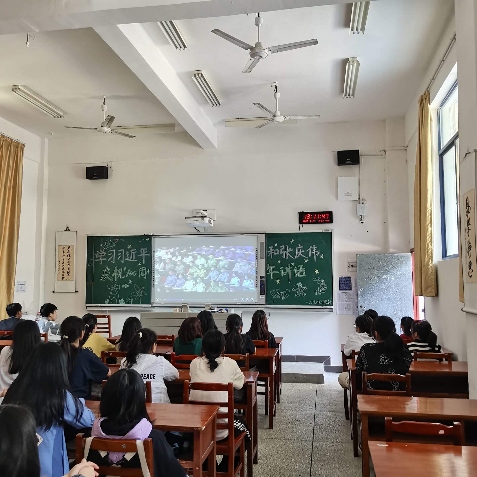 本次班会以团支部为单位在各班责任教室举行,各组织委员组织团员青年学习重要讲话精神,通过集体观影、ppt讲解等多种形式围绕主题进行。其意义在于激励和动员广大团员青年发扬光荣传统、勇担时代使命,不负韶华、只争朝夕,为奋力谱写实现第二个百年奋斗目标的湖南新篇章贡献青春力量。