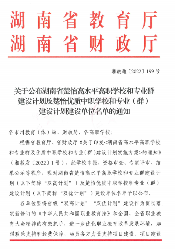 学院成功入选2022年湖南省楚怡高水平 高职专业群建设项目
