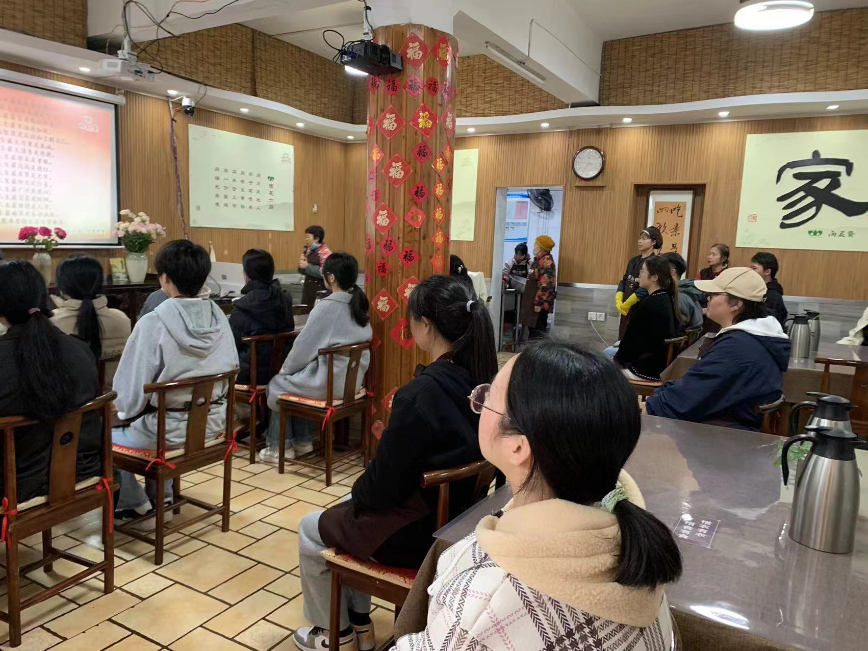 在上午8点,我班志愿者们纷纷提前到场,开始了紧张有序的准备工作。在谭灿娇老师的带领下,大学生志愿者们热情洋溢地投入到活动中。他们紧张而又忙碌的身影,充分展现了我院志愿者的风采。他们与雨花斋的工作人员携手合作,精心准备了丰盛的中餐,为老人们送上了温暖和关爱,他们用感恩的心服务着每一位用餐的人们。