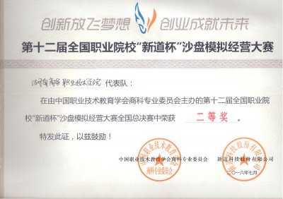 喜报:会计学院学生荣获2016年第十二届全国职业院校“新道杯”沙盘模拟经