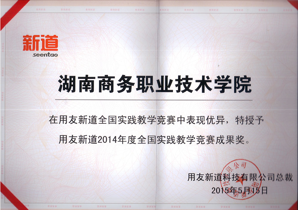 我院荣获用友新道2014年全国实践教学竞赛成果奖