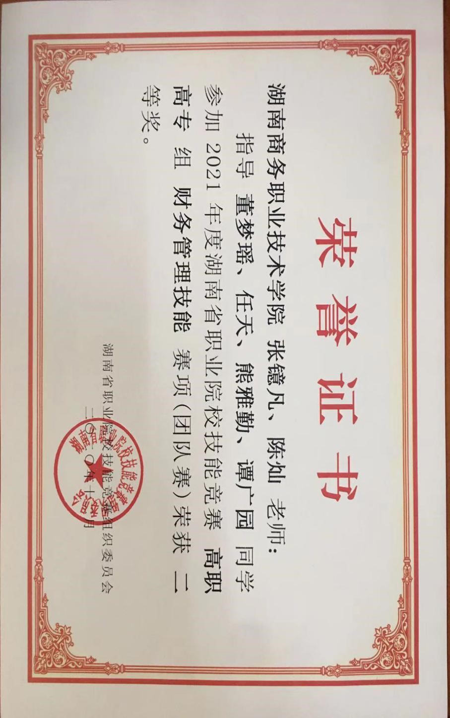 2020年12月,在2021年湖南省职业院校技能竞赛(财务管理)赛项中,我院共派出两队参赛,均荣获了二等奖。分别为李添瑜、毛政珍老师指导的由会计学院18财务管理1班冯龙花、18会计1班彭颖、19会计4班李彪、19会计4班刘红莲组成的参赛团队;由张镱凡、陈灿老师指导的由会计学院19会计8班任天、19会计5班董梦瑶、20会计3班熊雅琴、20会计3班谭广园组成的参赛团队。