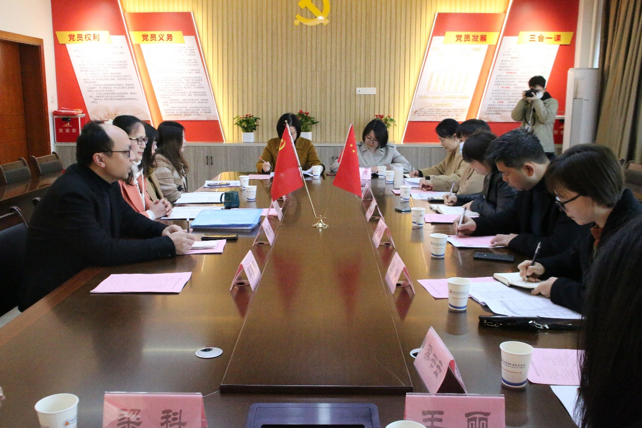 2023年2月27日上午,长沙财经学校就新设专业统计事务专业申报及合作办学、实训室建设等教学事项来我院进行研讨、交流、学习。为做好与我校合作办学专业中职阶段的高质量教学与管理,同时为该校新设统计专业的申报工作能顺利开展,长沙财经学校特派出党委委员、纪委书记张德军、财经商贸教研室主任杨琛兰及其他专业教师共计十人参与此次研讨活动。会计学院院长柳志、副院长许立兰、统计与会计教研室主任杨小燕、会计教研室主任李国伟、统计与会计教研室副主任张秦、统计与会计教研室专任教师刘蓉娜老师出席了此次研讨会。