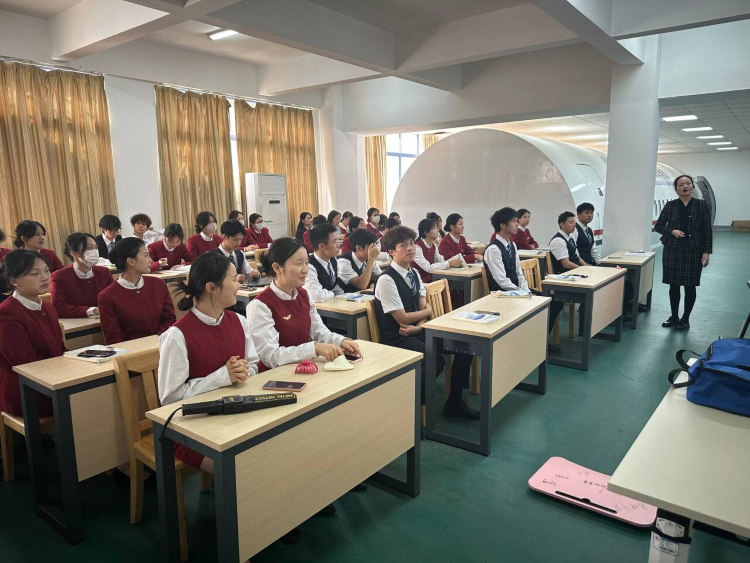2024年11月5日下午,旅游管理学院空中乘务专业刘南云老师的《民航服务沟通技巧》公开课在学院的空舱仿真模拟实训室展开。旅游管理学院教学副院长、空中乘务专业全体任课老师等12位教师分别到场听课。